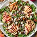 A refreshing Apple Arugula Salad featuring thinly sliced apples, peppery arugula, sweet figs, tangy goat cheese, and crunchy maple-glazed pecans, all tossed in a vibrant balsamic maple dressing. Perfect for a light lunch or elegant side dish.