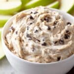 This Apple Toffee Dip is a delightfully creamy and sweet appetizer featuring smooth cream cheese blended with light brown sugar, vanilla, crunchy Heath English toffee bits, and mini chocolate chips. Perfectly paired with crisp apple slices, this no-cook dip is an easy-to-make treat that’s ideal for parties, snacks, or dessert.