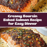 Baked Boursin Salmon is a simple and elegant dish featuring tender salmon fillets topped with creamy Boursin Garlic & Fine Herbs cheese. This French-inspired recipe combines the rich flavors of garlic, fresh lemon, and herbs, baked to perfection for a delicious and healthy main course. Ideal for busy weeknights or a special dinner, it pairs beautifully with roasted vegetables for a complete meal.