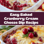 Baked Cranberry Cream Cheese Dip is a delightful and festive appetizer that’s perfect for any gathering. Creamy, tangy, and topped with melted cheese and crunchy pecans, it’s sure to be a crowd-pleaser. Serve it warm with crackers or bread for easy entertaining.