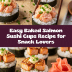 Baked Salmon Sushi Cups are a delightful twist on traditional sushi, combining tender salmon with seasoned rice in a crispy nori cup. This easy-to-make dish is perfect for entertaining or a quick, flavorful meal.