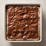 - Prepare the Chocolate Ganache: Heat 100 ml of heavy cream in a small saucepan until it just begins to simmer. Pour the hot cream over the chopped dark chocolate in a bowl. Let it sit for 1–2 minutes, then stir gently until the ganache is smooth. Stir in 1 teaspoon of butter if you want a glossy finish. Allow the ganache to cool slightly before pouring it over the cream layer in the pan. Smooth the top evenly with a spatula.