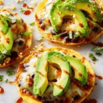 Delicious and easy Black Bean Tostadas featuring seasoned black beans, melted pepper jack cheese on crisp tostadas, topped with fresh avocado slices and a drizzle of hot sauce. A perfect quick Mexican-inspired meal with a flavorful, hearty bean mixture and gooey cheese.