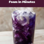 A vibrant and refreshing Blue Tea Latte featuring naturally colorful butterfly pea flower tea enhanced with creamy vanilla cold foam. This visually stunning drink combines floral notes and rich creaminess for a delightful and soothing beverage perfect for any time of day.