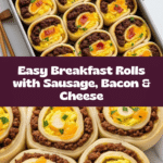 Start your day with these delicious Breakfast Rolls, packed with eggs, sausage, bacon, and cheese all wrapped in flaky crescent dough. They’re perfect for a hearty morning meal or a weekend brunch treat.