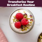 This Cacao Blended Chia Pudding is a delicious and nutritious vegan treat combining raw cacao powder, chia seeds, and soy milk for a creamy texture, naturally sweetened with Medjool dates. Enhanced with optional vanilla protein powder and topped with dairy-free yogurt, fresh raspberries, and chopped pistachios, it’s a perfect make-ahead breakfast or dessert that’s rich in fiber, antioxidants, and plant-based protein.