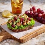 This California Grape and Chicken Salad with Lemon-Balsamic Vinaigrette is a vibrant and nutritious dish featuring tender grilled chicken, juicy California grapes, creamy avocado, and smoky bacon, all tossed in a tangy lemon-balsamic dressing. Perfect for a satisfying lunch or light dinner, this salad combines fresh and flavorful ingredients for a delicious and wholesome meal that can also be served as a sandwich filling. Dairy-free and packed with protein and fiber, it supports heart, brain, and immune health.