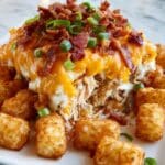 This Chicken Bacon Ranch Tater Tot Casserole is a comforting and crowd-pleasing dish perfect for family dinners or gatherings. It combines tender shredded chicken, crispy bacon, creamy ranch, and melted cheddar, all topped with golden tater tots for a satisfying crunch.