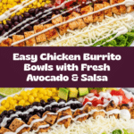 Chicken burrito bowls are a flavorful and vibrant meal that brings together seasoned chicken, fresh vegetables, and zesty salsa. This easy-to-make recipe is perfect for a satisfying weeknight dinner or meal prep.