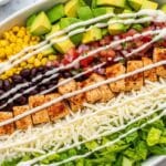 - Assemble the burrito bowls: Evenly distribute chopped romaine lettuce, corn, black beans, cooked rice, and cooked chicken into serving bowls.