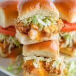 These Chicken Tender Sliders are a quick and delicious meal featuring tender chicken pieces, melted Colby Jack cheese, fresh lettuce, and tomato slices, all sandwiched in soft Hawaiian rolls with a sweet and tangy honey mustard glaze. Perfect for a crowd-pleasing appetizer, game day snack, or easy family dinner.