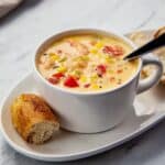 This Chipotle Clam Chowder is a creamy, smoky twist on traditional clam chowder featuring smoky chipotle peppers, tender clams, and crisp bacon. The chowder is thickened with a homemade roux and enriched with heavy cream, making it hearty and comforting. Perfect for a cozy meal, it combines the natural sweetness of corn and potatoes with the spicy, smoky depth of chipotle peppers and smoky baked bacon.