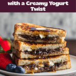 - Serve with toppings: Transfer the French toast to serving plates and top with maple syrup or a blend of maple syrup and extra Greek yogurt for a tangy, sweet finish. Serve immediately while warm and enjoy the gooey chocolate center.
