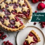 Keywords: Christmas Pie, holiday dessert, fruit pie, vanilla custard, spiced pie, cranberry cherry pie, flaky crust, gingerbread flavored dessert