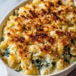 Keywords: creamed spinach, mac and cheese, baked mac and cheese, spinach pasta, cheesy pasta casserole, comfort food