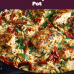 A comforting and creamy Chicken Pot Pie Orzo recipe combining tender chicken, orzo pasta, and mixed vegetables in a rich, flavorful broth. This one-pot stovetop dish is perfect for a hearty weeknight meal, delivering all the cozy flavors of traditional pot pie in a quicker, simpler form.