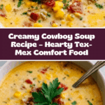 Creamy Cowboy Soup is a warm, hearty one-pot dish that combines ground beef, black beans, corn, tomatoes, and potatoes in a rich, creamy broth. With smoky paprika and chili powder, it offers a comforting Tex-Mex flavor perfect for busy nights or cozy weekends.