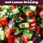 Fattoush is a refreshing Middle Eastern salad featuring crisp vegetables mixed with toasted pita bread pieces and a tangy lemon dressing. This easy-to-make salad offers a delightful combination of textures and bright flavors, making it a perfect starter or side dish for any meal.