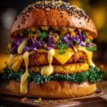 This delicious and hearty vegan burger features a protein-packed black bean base combined with oats and aromatic spices, pan-fried to crispy perfection. A wholesome, plant-based option perfect for a savory meal that’s both nutritious and satisfying.