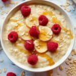 Store leftover custard oatmeal in an airtight container in the refrigerator for up to 3 days. To reheat, warm in the microwave with a splash of milk to restore its creamy consistency. Add fresh toppings before serving.