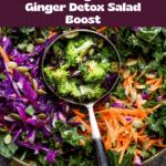 A vibrant and nutrient-packed Detox Salad featuring kale, broccoli, red cabbage, and spinach tossed with a zesty lemon ginger vinaigrette. This salad combines crunchy vegetables, sweet dried cranberries, and toasted nuts for a refreshing, healthful meal or side dish perfect for cleansing and energizing your body.