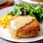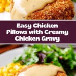 Store leftover chicken pillows in an airtight container in the refrigerator for up to 3 days. Reheat in a 350°F oven until warmed through to maintain crispiness, or microwave briefly if you prefer soft texture. The gravy can be stored separately and reheated on the stovetop or in the microwave.