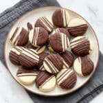 - If you don’t have a piping bag, use a small spoon to drizzle the melted chocolate over the rounds.