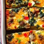 PrintEasy Make-Ahead Breakfast Casserole with Sausage, Vegetables, and Cheddar Recipe