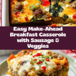 This easy make-ahead breakfast casserole is a hearty and flavorful start to any morning. Loaded with sausage, vegetables, and cheese, it can be prepared the night before and baked fresh when you’re ready to eat. Perfect for busy weekdays or weekend brunches.