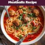 This easy spaghetti and meatballs recipe combines juicy, tender meatballs made with ground beef and Italian sausage, simmered in rich marinara sauce and served over perfectly cooked spaghetti noodles. It’s a classic and comforting Italian-American dish perfect for a satisfying weeknight dinner.