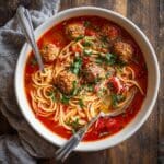 This easy spaghetti and meatballs recipe combines juicy, tender meatballs made with ground beef and Italian sausage, simmered in rich marinara sauce and served over perfectly cooked spaghetti noodles. It’s a classic and comforting Italian-American dish perfect for a satisfying weeknight dinner.