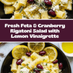 Keywords: feta cranberry pasta salad, lemon vinaigrette rigatoni, creamy feta cranberry salad, rigatoni pasta with cranberries, feta and cranberry pasta recipe