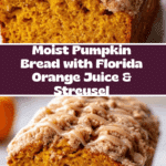 This Florida Orange Juice Pumpkin Bread is a delightful twist on a classic autumn treat. Bursting with fresh citrus flavor, warm spices, and a tender pumpkin crumb, it’s topped with a crunchy streusel and finished with a zesty orange glaze. Perfect for breakfast, snacks, or dessert.