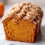 Keywords: pumpkin bread, orange juice pumpkin bread, pumpkin bread with streusel, orange glaze pumpkin bread, fall baking, pumpkin spice bread, citrus pumpkin loaf, autumn bread dessert