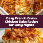 This French Onion Chicken Bake is a comforting and easy casserole perfect for a weeknight dinner. It combines tender chicken, creamy sauce, and crispy French fried onions for a deliciously satisfying meal.