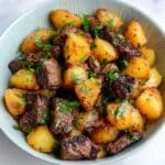 Keywords: Garlic Butter Steak, Steak and Potatoes, One Pan Steak, Yukon Gold Potatoes, Beef Cubes, Garlic Herb Butter
