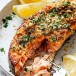 Garlic Herb Butter Salmon Steaks with Parmesan Recipe