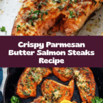 This delicious salmon steak recipe features perfectly seared and broiled salmon topped with a flavorful herb butter and parmesan cheese, creating a golden crust and tender juicy interior. It’s a quick and elegant dish ideal for seafood lovers looking for a simple yet impressive meal.