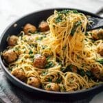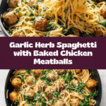Keywords: Garlic Herb Spaghetti, Baked Chicken Meatballs, One-Pot Pasta, Turkey Meatballs, Easy Dinner Recipe, Garlic Butter Sauce, Italian Pasta Dish