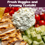 Store leftover chicken and vegetables separately in airtight containers in the refrigerator for up to 3 days. Keep tzatziki sauce chilled and stir before serving again. To reheat, warm the chicken gently in a skillet or microwave, then assemble the bowls fresh to keep textures crisp.