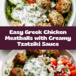 Keywords: Greek chicken meatballs, tzatziki sauce, baked meatballs, healthy chicken recipes, Mediterranean food, Greek appetizers, easy dinner recipes