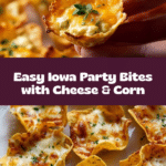 Iowa Party Bites are delightful, bite-sized snacks featuring tortilla chips filled with a creamy mixture of cream cheese, mozzarella, sweet corn, and green chiles, topped with Parmesan and baked until golden and bubbly. Perfect for gatherings and finger food lovers.