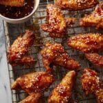 5. Glaze and Serve: Using a pastry brush, coat each chicken wing generously with the prepared sauce glaze. Arrange the glazed wings on a serving platter and sprinkle with sesame seeds. Serve immediately for the best flavor and crispness.