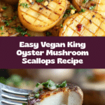 This vegan King Oyster Mushroom Scallops recipe offers a delicious plant-based twist on traditional scallops using large king oyster mushrooms. Pan-seared in vegan butter and seasoned with garlic powder, sea salt, and fresh garlic, these mushrooms develop a tender, meaty texture and golden crust. Garnished with fresh parsley and lemon wedges, they make a perfect appetizer or main dish for vegan and vegetarian diets.