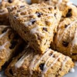 Store leftover scones in an airtight container at room temperature for up to 2 days. For longer storage, freeze the baked scones in a sealed bag for up to 1 month. Reheat in a low oven or toaster oven until warmed through, then drizzle fresh glaze if desired.