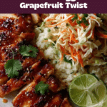 - Step 5: Transfer the cooked chicken to a cutting board and let it rest. Squeeze the juice from the reserved grapefruit peels into the baking dish, stirring to scrape up any browned bits. Stir in the grapefruit pieces.