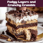 This indulgent, no-bake chocolate peanut butter cake combines creamy peanut butter mousse, luscious whipped cream, crunchy graham cracker crumble, and rich hot fudge layers for a decadent dessert that requires no baking. Perfectly layered with Reese’s peanut butter cups and chocolate chips, this cake is chilled until the graham crackers soften to a cake-like texture, making it an easy and impressive treat to enjoy.