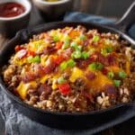 - Assemble the Casserole: Spread the beef and rice mixture evenly in the prepared baking dish. Sprinkle the shredded mozzarella cheese evenly over the top to create a cheesy crust.