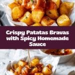 Patatas Bravas is a classic Spanish tapas dish featuring crispy fried potatoes served with a spicy, smoky tomato-based sauce. The potatoes are peeled, cubed, and fried until golden and tender inside, then tossed with a flavorful sauce made from sautéed onions, paprika, cayenne pepper, flour, vegetable stock, and tomato puree, blended smooth for a perfect balance of heat and richness. This dish is best enjoyed warm as a delicious appetizer or side.