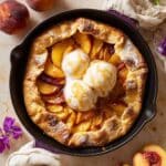 This rustic Peach Galette recipe features a flaky puff pastry crust filled with tender, spiced peach slices. Easy to assemble and bake in a skillet, it makes a perfect dessert served warm with ice cream or whipped cream.